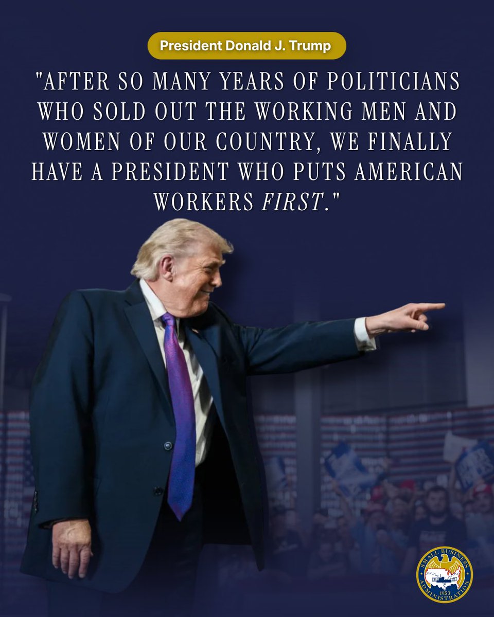 President Trump and the Trump SBA will always put the hard-working men and women of America FIRST.